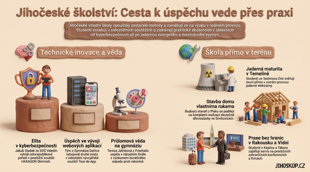 Regionální školství často čelí kritice za zastaralý přístup. Zprávy z jihočeských středních škol ukazují jiný obrázek. Studenti se učí v reálném provozu a řeší skutečné problémy. Kdo chce dnes uspět, potřebuje pro život především praxi. Střední školy na jihu Čech mu ji evidentně umí dát.