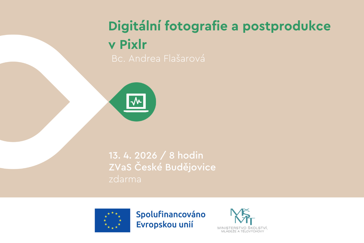 Chcete umět z běžné fotky vytvořit vizuálně silný a kvalitní výstup? Tento workshop vás prakticky provede úpravou fotografií v bezplatném online editoru Pixlr. Naučíte se pracovat s barvami, jasem, kontrastem, retuší i kompozicí a vyzkoušíte si také práci s vrstvami a maskami pro kreativní fotomontáže. Získané dovednosti využijete při dokumentaci školních akcí, tvorbě propagačních materiálů, v mediální výchově i při přípravě vlastních vzdělávacích materiálů. Workshop je vhodný pro pedagogy všech stupňů škol, kteří chtějí své digitální výstupy posunout na vyšší úroveň.